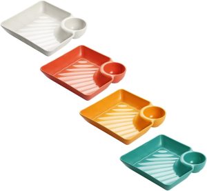 Plastic Dumpling Plates and Sushi Serving Plates, Square 4-Piece Collection, Sturdy PP Material, Food Serving Snack Tray for Parties and Home Use
