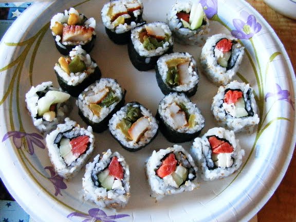I was hungry for sushi today and with the squash and cucumber sitting in the refrigerator without any other purpose, I went ahead and threw a few rolls together.