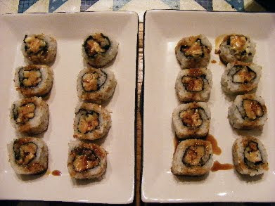 4. Two Modified Dragon Rolls – Eel, imitation crab, cucumber, and sesame oil/wasabi mayo, drizzled with eel sauce