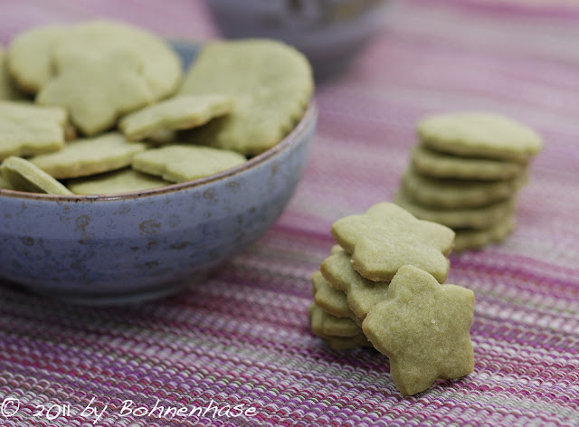 Just now in Christmas time I like to bake different cookies with my daughter. In addition to Vanillekipferl and Hazelnut Cookies, Matcha Cookies are one of my favorites. For one or the other these cookies looks because of the colour some getting used. But they are very tasty. Who likes Matcha, will love them ^-^