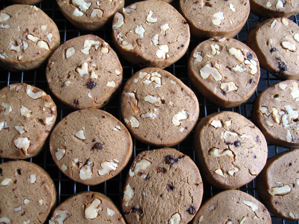 Remove and discard plastic wrap on the dough and slice into 1cm thick rounds. Place on the prepared tray. These coolies won’t spread, so you only need 1 to 2cm room between them.