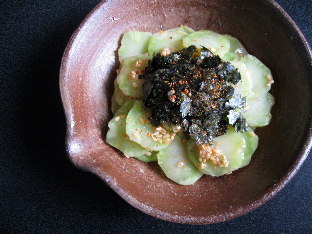 ‘Mock Zha Cai‘ and ‘Nuta Salad’ are lovely ways to use up Broccoli Stems. Here is another recipe for you to try. This is a Korean inspired Sesame & Garlic flavoured salad. This salad is also really good for drinking.