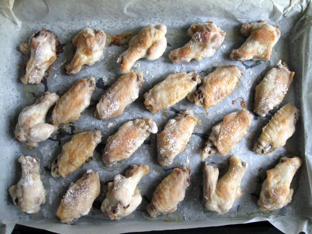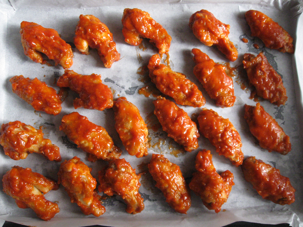 Combine all the Marinade ingredients in a bowl. Add Chicken Wings to the marinade, massage to combine, and set aside for a few hours. Overnight is better. *Note: If you don’t have time to marinate, season with Salt & Pepper.Preheat the oven to 200℃. Line a baking tray with baking paper. *Note: You may wish to use a rack instead of baking paper if you have it.Drain the marinade and dry the Chicken Wings with paper towel. Combine Plain Flour and Potato Starch (OR Corn Starch), and lightly coat each Chicken Wings with the flour mixture, place them on the prepared baking tray, and bake for 30 minutes. While the Chicken Wings are baking in the oven, make the Sauce. Place Butter and Garlic in a heat-roof mixing bowl, heat in the microwave for 30 seconds or until melted (you can do this using a saucepan), add all other ingredients and mix well. *Note: Alter the amount of Chilli to suit your taste. 1/2 teaspoon is just right for my family.When Chicken Wings are baked, add to the sauce to coat, then place them back on the tray. *Note: Replace the baking paper if required.